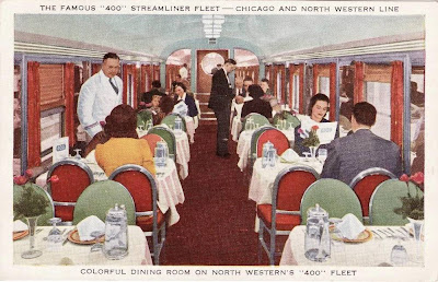 POSTCARD - CHICAGO - TRAINS - CHICAGO AND NORTH WESTERN - THE 400 - DINING CAR - NICE - 1940s